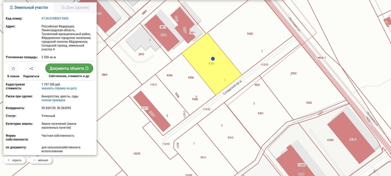 - Местоположение: Ленинградская область, Тосненский район, дер. Федоровское, пр-зд Складской (20км. от спб и 5 км. от Московского шоссе)